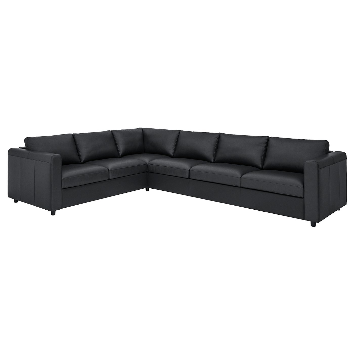 An expansive 5-seat corner sofa in black Bomstad leather, designed for maximum comfort and style in bigger spaces.